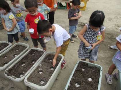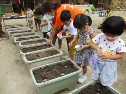 3歳はな組も,蒔きました。