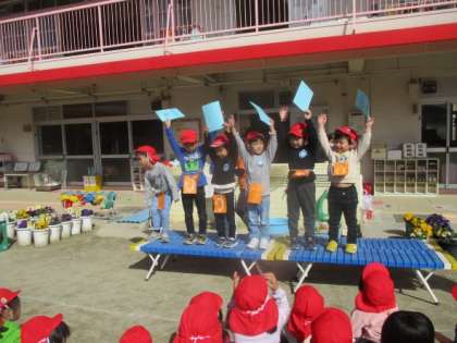 マラソンを終え、園庭で表彰式。