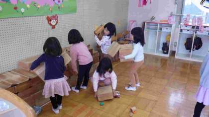 積木の片付け 4歳ことり組