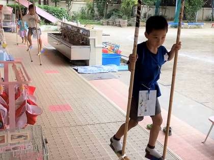 竹馬、楽しんでいます!5歳児そら組