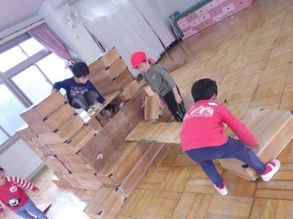 3歳児はな組の子ども達の元気な声も聞こえています。