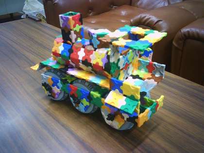 「できた!」と自慢げに見せてくれたラキューで作った蒸気機関車!その、根気と言ったら、大人が驚くほどです。友達同士で教え合いながら、楽しんでいます。