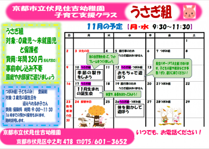 教育相談うさぎ組の11月の予定です。