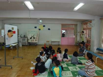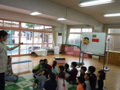 11月に入り、気温がぐっと下がってきました。子どもたちも鼻水がでていたり、咳やくしゃみをしている姿が良く見られるようになっています。そこで、風邪ばい菌がどれくらいの速さで、どれくらい飛んでいくのか?飛まつ感染についてお話をしました。