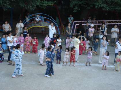 100周年の今年の登園日は,親子で楽しむ夕涼み会でした。