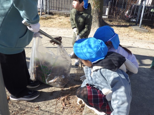 ごみや落ち葉を集めたり、拾ったりしました。子ども達は、やさしい地域のみなさんと一緒に