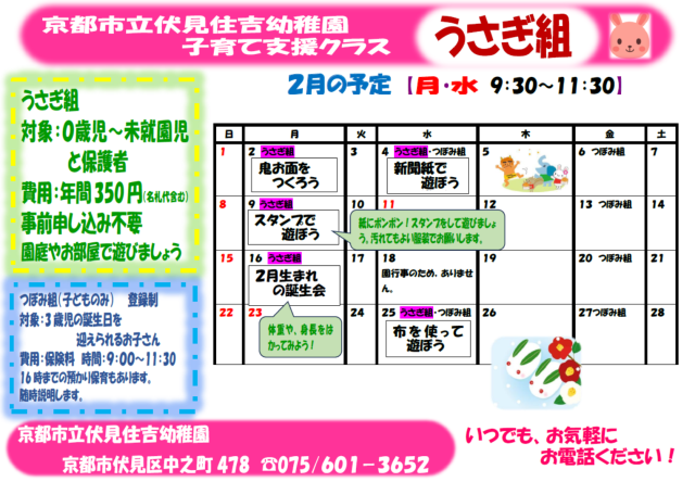 2月のうさぎ組予定表です。