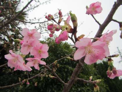 今日はあいにくの雨でしたが,来週の19日には,そら組(年長児)が修了式の日を迎えます。この日を祝ってくれるかのように,幼稚園の河津桜が満開になりました。桜色でもなく,桃色でもなく,美しい色です。何色といえばいいのでしょうか。