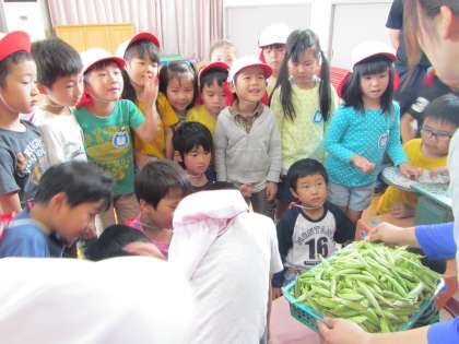 「また豆ごはんつくって,幼稚園のみんなで食べよう!」と張りきる子どもたち。また来週,みんなで豆ごはんつくって食べようね!