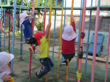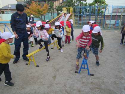 お兄さん,今日は本当に楽しい時間をありがとうございました。「もっとやりたい」と意欲満々の子どもたち。遊具で遊ぶ楽しさをより感じたひとときでした。