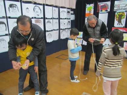 難しいと思っていたこま回しもなかよし会の方と一緒なら楽しめたようです。子ども達に優しく丁寧にかかわって教えてくださり,ありがとうございました。