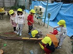今日は「昨日の続きをしよう!」と砂場で長〜い道を作り,水を流して楽しんでいました。