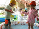 ビニールプールに入った途端,キャーキャーと嬉しそうな笑顔が見れました。