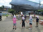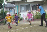 幼稚園では,この過ごしやすい季節に,体を動かして遊ぶ楽しさを存分に味わう経験をしてほしいと願い,今週より年長組では,朝から園庭で当番が進めながら,体操を始めています。かけっこやリレーも頑張っています。2階からは,幼稚園兄弟を応援する4歳児にじ組の子どもたちの姿もありました。