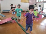 そこでクラスみんなで,飛んだり,ぶら下がったり,一本橋を渡ったりして楽しみました。