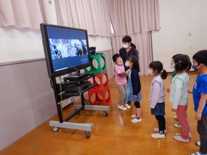 そして午後は,ウサギのさいちゃん,みるちゃんのお父さんお母さんがいる,竹田幼稚園の5歳児とのオンライン交流をしました。