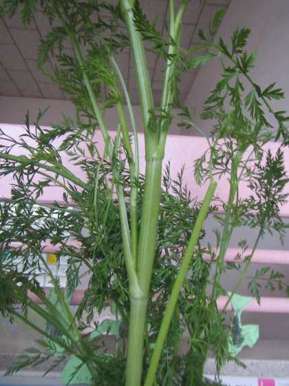面白い形のニンジンが次々に顔を出し,子どもたちは大喜び。そしてぐんぐん育った葉っぱの部分をじっと見て