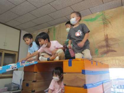 「お弁当の後○○ちゃんと遊ぶねん」と幼稚園きょうだいの友達と遊ぶことを楽しみにする言葉が聞こえてきました。午後からは,その言葉通り,そら組の保育室に自然とにじ組が遊びに行ったりと,クラスを越えて関わって遊ぶ姿が見られ,とても嬉しかったです。これからも幼稚園きょうだいや異年齢の関わりを大切にしながら,お互いに刺激し合って遊ぶ姿を見守っていきたいと思っています。
