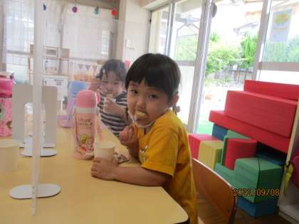 保育室に戻ってから、教職員が手作りした月見団子をいただきました。