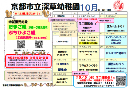 深草幼稚園10月の教育相談のご案内(10月5日ミニうんどうかいです!)