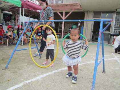 かけっこでは、ゴールでにじ組のみんなにメダルをかけてもらい、とっても嬉しそうでした。