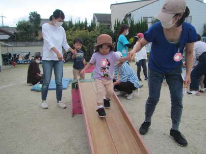 「お散歩に行こう!」や「公園にいこう!」では、トンネルやふかふかマット、滑り台など巧技台の好きなところに行って、思い切り体を使って遊びました。