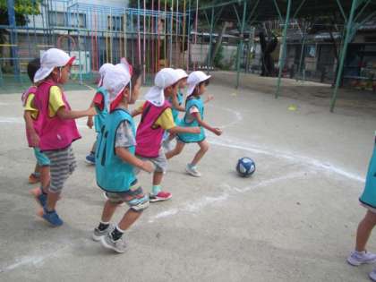 運動会を終えて,さらにパワーアップした子どもたちはゲーム的な遊びも友だちと力を合わせて夢中になってボールを追いかけ,白熱したゲームとなりました!