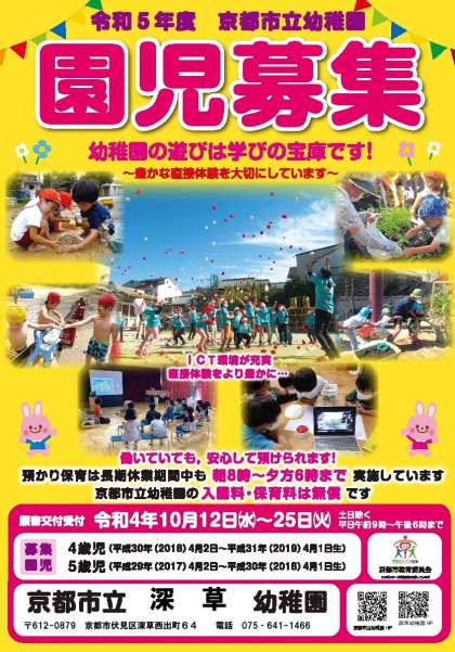広い園庭でのびのび活動する深草幼稚園にどうぞ!!