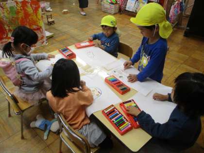 何をして遊ぼうかな〜と絵の具遊びができるように用意しておくと、登園してきてすぐに