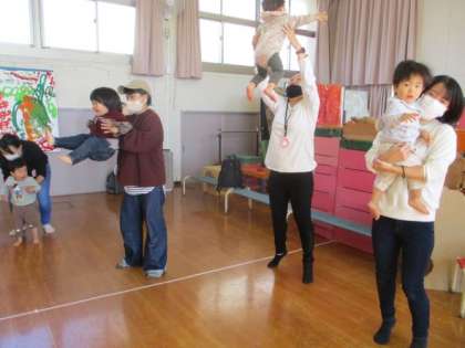 おうちの人もにっこり,子どももにっこり。親子でほっこりふれあって遊びました。