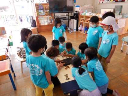 と楽しかった経験を思い出す声が出て、早速幼稚園でもどんぐりずもう遊びが始まりました。