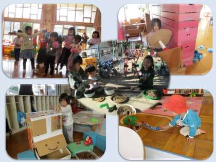 幼稚園にもずいぶん慣れてきて,お友だちと一緒に遊んだり,自然にす〜っと大きい組のお兄さんお姉さんの遊びに入れてもらってたり・・・いろいろな遊びができて楽しいね!