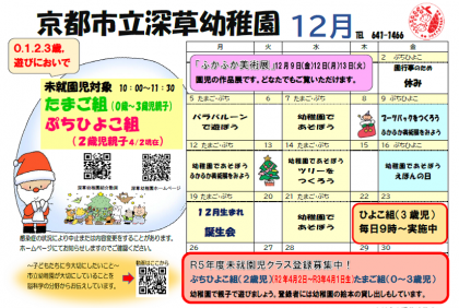 京都市立深草幼稚園、教育相談(たまご組・ぷちひよこ組)12月のご案内です。
