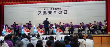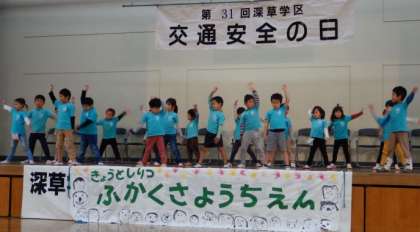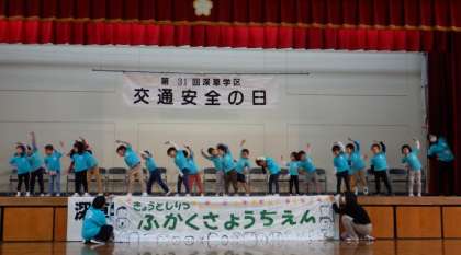 伏見警察署の方による交通安全教室に参加したり、深草小学校のお兄さん、お姉さんによる交通安全宣言、京都府警察音楽隊の演奏やカラーガード隊の演技なども見せていただいたりしました。