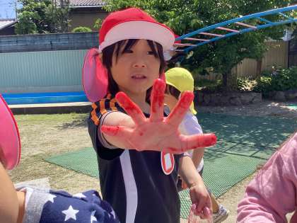 「〇〇ちゃんの手、真っ赤っか」