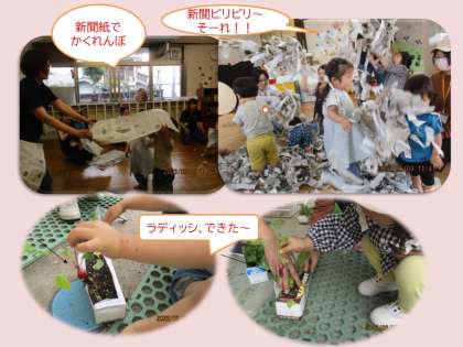 お母さんと新聞紙かくれんぼをしたり、ビリビリやぶって…