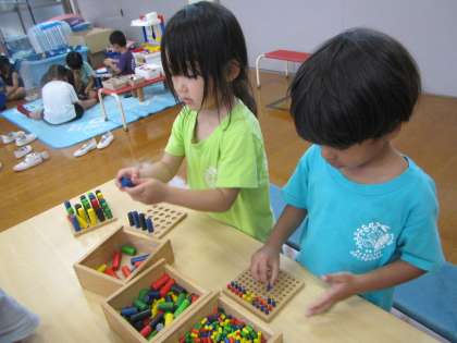 スティッキを立てたり、モザイク遊びをしたり・・・