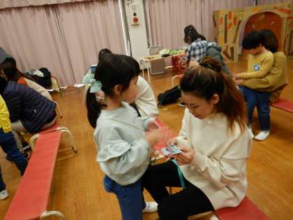 そして子どもたちからお家の人への感謝の気持ちを込めてプラ板のキーホルダーをプレゼントしました。何の絵をかいたかもじっくりと話をしていて、とても心が温まる時間でした。