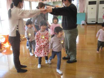 今日はひよこ組で一年間うたった歌や手遊び、カスタネットの音遊びをおうちの方に見てもらったり、みんなで遊んだり、楽しい時間を過ごしました。