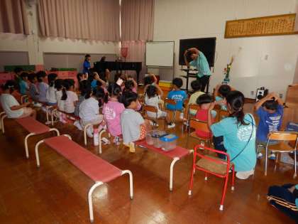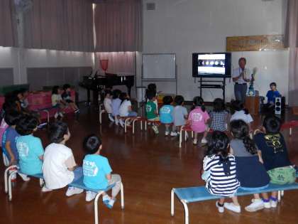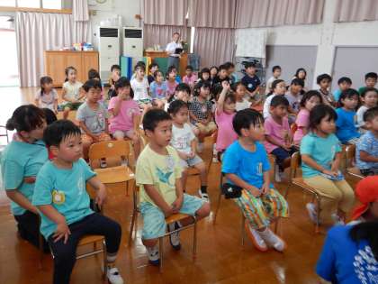 その後、4・5歳児は、園長先生から、「月の満ち欠け」の様子や「中秋の名月」についての話をききました。
