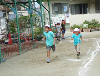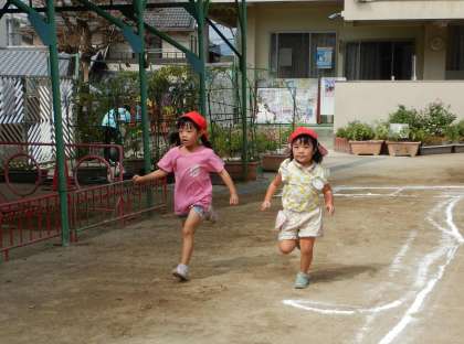 かけっこではゴールを目指して走ります。手をしっかり振ったり、ゴールテープの最後まで力いっぱい走ったりなど、一人一人が自分の新記録に挑戦する日々です。