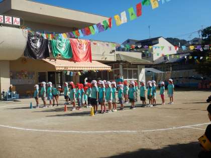 今日は絶好の秋晴れに恵まれ、お家の人、お客様を招いての運動会が開催できました。