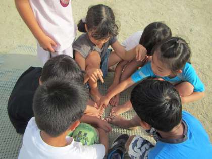 「鬼ごっこしよ」とみんな足をだして『鬼きめ』