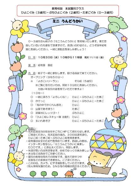 10月30日(水)0〜3歳児「ミニうんどうかい」実施予定です