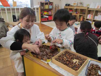 未収園児ぷちひよこ組では『どんぐりマラカス』をつくって遊びました。
