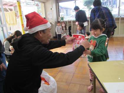 ちょっとびっくりの子ども達でしたが『プレゼント』をもらって大喜び。一足早いクリスマスとなり、うれしい日になりました。
