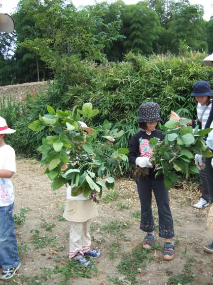 隣には一緒に植えたさつまいもの葉っぱが大きく青々と育っていました。