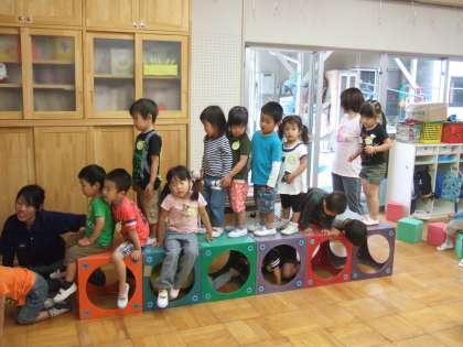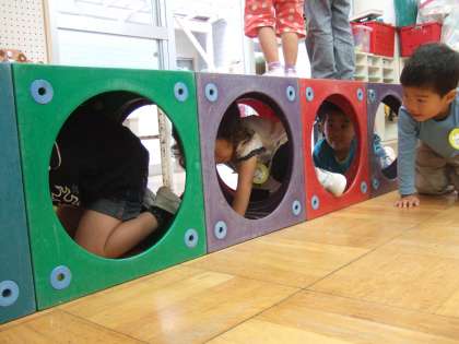子どもたちが次々にくぐって行ったり,上を歩いたり