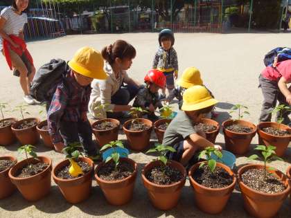 毎日,親子で水やりをしながら,一緒にしゃがみながら,同じ目線になって,生長を喜んだり,収穫を楽しみにしたりしてほしいな,と思っています。