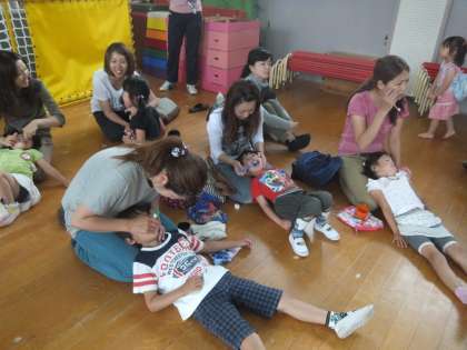 最後に,お家の人に仕上げ磨きをしてもらい,歯はピカピカ。